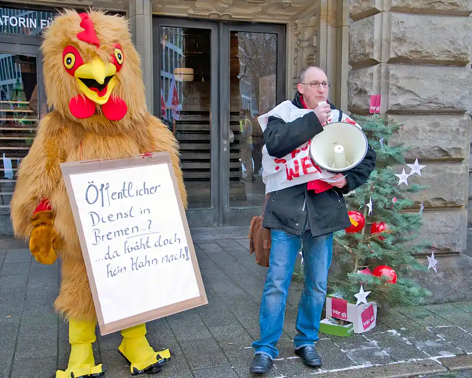 Alle Jahre wieder übergeben die Beamtinnen und Beamten der Senatorin für Finanzen einen abgemagerten Tannenbaum, um auf ihre Einkommenseinbußen aufmerksam zu machen