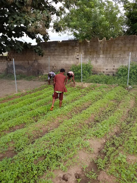 Dieser mit Rest-Cents geförderte Schulgarten in Osogbo, Nigeria, dient gleichermaßen der Ausbildung und der Ernährung der Schüler:innen. - Datei öffen/herunterladen (jpg, 303.1 KB) -
