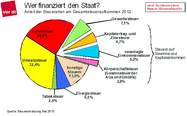 Grafik: Wer finanziert den Staat? (in: ver.di-Wirtschaftspolitik aktuell Nr. 16, September 2013, www.wipo.verdi.de)