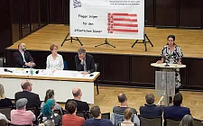 ich möchte heute - stellvertretend für den Ausbildungspersonalrat der dual Studierenden - zwei große Probleme, die sich hauptsächlich auf den dualen Studiengang Public Administration (DSPA) beziehen, ansprechen: Zum einen die fehlende Planungssicherheit für Studierende und zum anderen die erschwerte Kommunikation mit dem Arbeitgeber und der Hochschule.